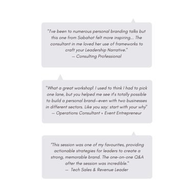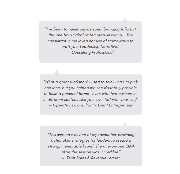 Sabahat Naureen is an established workshop facilitator and speaker. Known for her signature high-energy delivery and insight-driven topics, she draws crowds and gets people talking - even after the event is over.