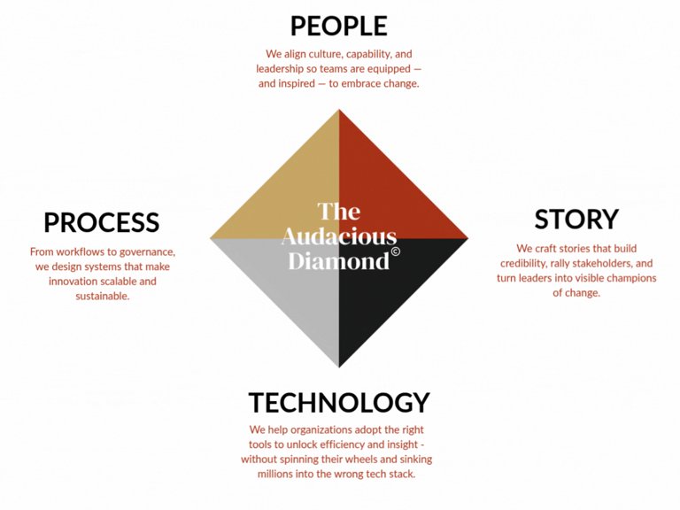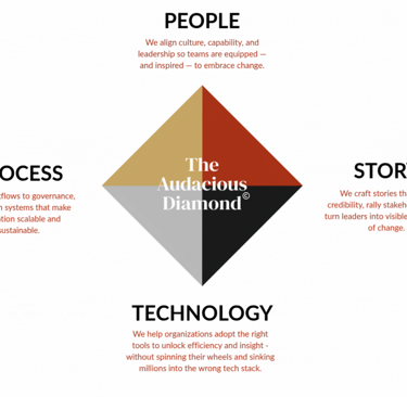 Real transformation maturity is about honest capability across four critical dimensions that must work together - what we call the Audacious Transformation Diamond: